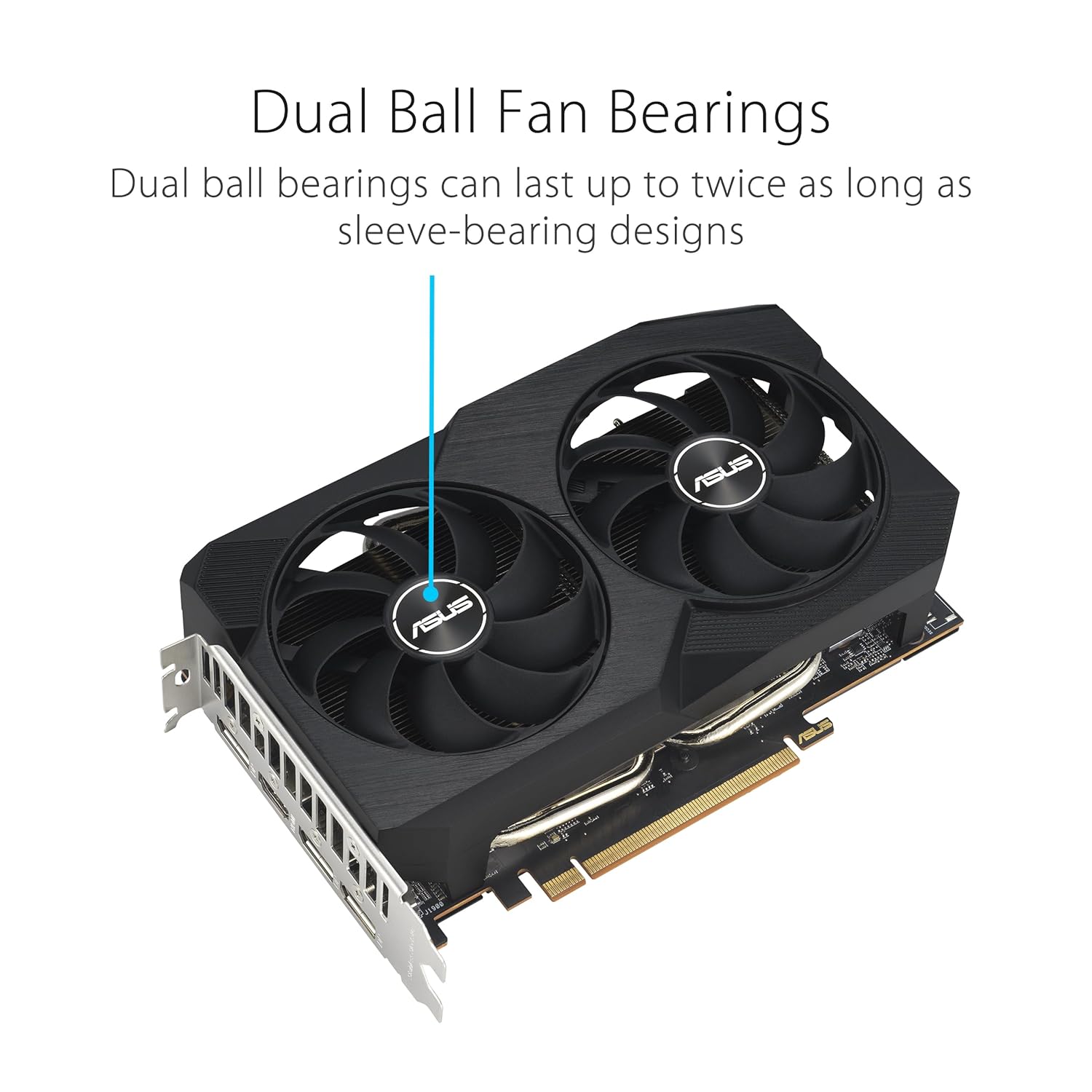 ASUS Dual Radeon RX 7600 OC Edition 8GB GDDR6 optimized inside and out for lower temps and durability, OC mode: Up to 2745 MHz (Boost Clock), Axial-tech fan design features a smaller fan hub to increase airflow through the cooling array.